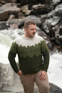 Patrick Griffith of @GryffKnits released his very first pattern Tuesday Oct 7th... and oh my is it amazing! The Call of the Wild is a unisex, size-inclusive, round-yoked colorwork sweater knit seamlessly from the top down. The circular yoke is adorned with twisted stitches that create the silhouette of the distant mountain ridgelines with alternating sections of Stockinette and Half-Twisted Broken Rib.